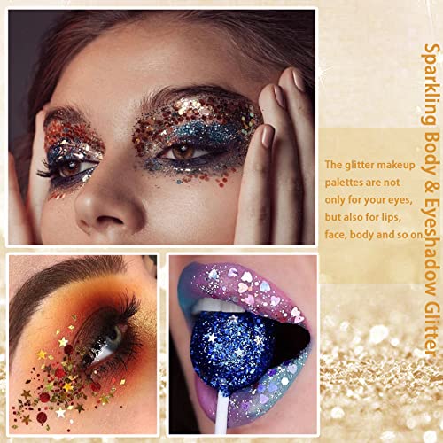 Adatto a Tutte Le Occasioni: Le palette per il trucco glitterate non sono solo per i tuoi occhi, ma anche per labbra, viso, corpo e così via. Chocie perfetto per festival, feste di matrimonio, feste di trucco o trucco causale, ecc. Le paillettes sono piccoli pezzi, evitando che ti entrino negli occhi.