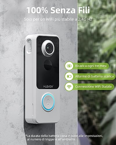 MUBVIEW - Videocitofono WiFi Video Campanello senza Fili da Esterno, Citofono con Rilevamento Umano PIR, Audio Bidirezionale, Schede SD e Cloud Storage, Impermeabile IP66, Bianco