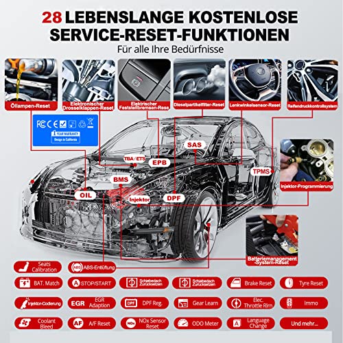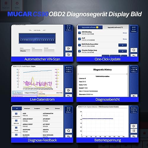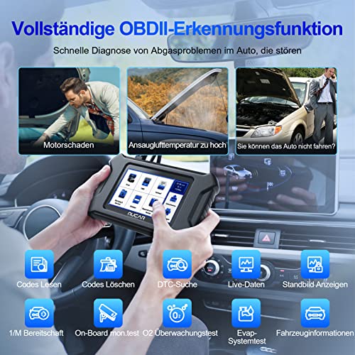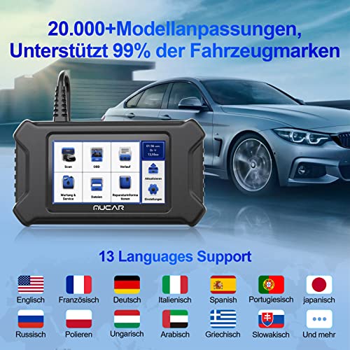 Mucar Dispositivo diagnostico OBD2 Dispositivo diagnostico CS90 auto Tedesco, strumenti diagnostici del sistema motore OBDII con 28 funzioni di ripristino, aggiornamento software gratuito