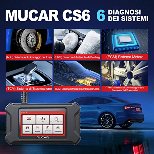 Mucar Strumento diagnostico OBDII Diagnosi Auto CS6 OBD2 Dotato di aggiornamento a Vita di 7 Servizi di Manutenzione (Oil/EPB/SAS/ETS/TPMS/ABS/FAP) e 6 diagnosi di Sistema