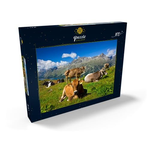 Mucche Sul Sentiero Corvatsch-Murtel Con Il Piz Polaschin E I Laghi Dell'Alta Engadina, St. Moritz - Premium 100 Pezzi Puzzle - MyPuzzle Collezione speciale di Puzzle Galaxy
