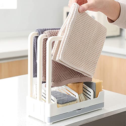 MuChoney Organizer per Lavello da Cucina 3 Supporti Stabili per Strofinacci da Cucina Contenitore per Strofinacci, Contenitore per Spugna, Supporto per Strofinacci in Plastica PP Grigio/Bianco