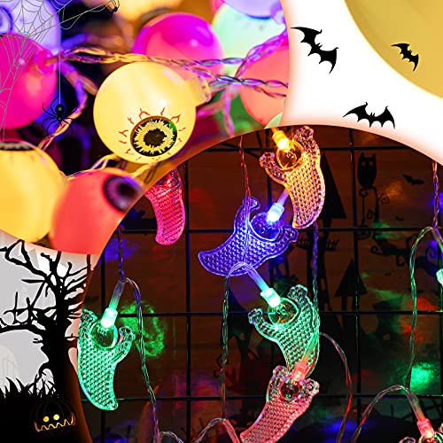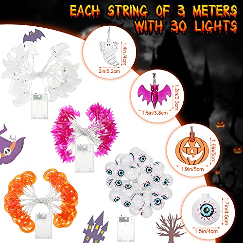 Mudder 4 Pezzi Luci di Decorazione di Halloween Luci di Stringa di Halloween 40 Feet Kit di Luci Decorazioni del Bulbo Oculare Zucca Fantasma Pipistrello di Halloween a Batteria con 120 Luci LED