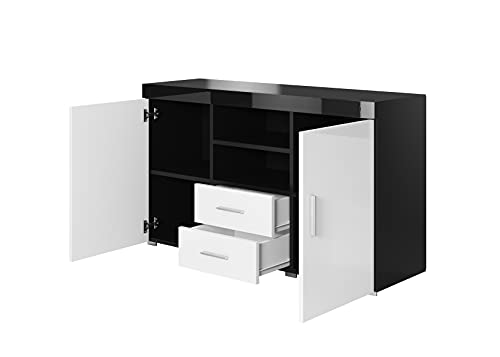 MB Muebles Bonitos | Credenza Stile Moderno Roque | Larghezza 140 x Altezza 80 x Profondità 40 cm | Mobile in Melamina lucida | Colore Nero e Bianco