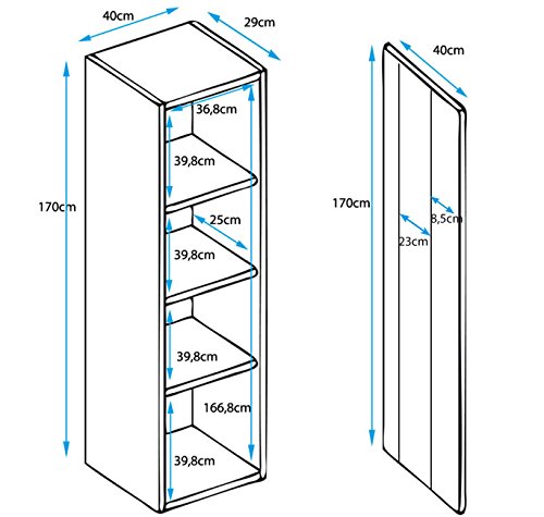 MB Muebles Bonitos | Vetrinetta moderna sospesa modello Nora V5 bianco nero con LED | Larghezza: 40cm x Altezza: 170cm x Profondità: 29 cm soggiorno