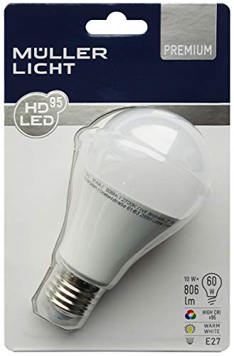 Mueller della luce 400251 _ Set a +, Set di HD95 della lampadina a led da 60 W, Plastica, 10 W, E27, bianco, 6 x 6 x 12 cm