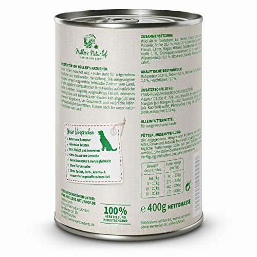Muellers cortile | alimento umido per tutte le razze di cani | getreidefrei naturale e senza glutine | con prato giardino Verdure e erbe | naturnahe rezeptur con 65% carne e pesce
