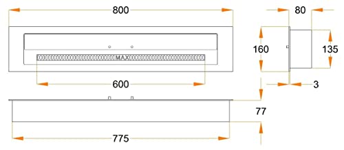 Muenkel design Safety Burner 1200 - Bruciatore manuale - Camera di combustione bioetanolo con 95 cm di larghezza - acciaio inox spazzolato