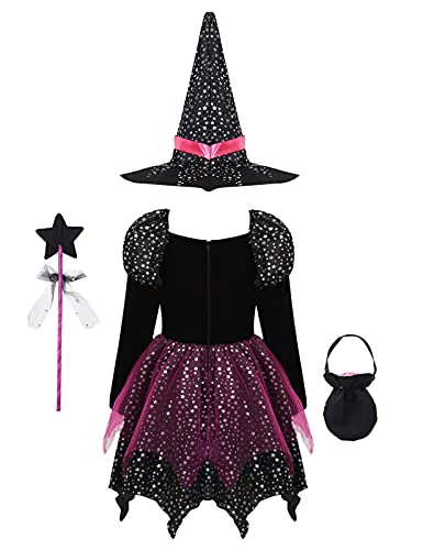 Mufeng Costume Strega Bambina Carnevale Pasqua Costume di Streghetta Set di Travestimento Carnevale Fancy Vestito Glitter + Cappello di Strega + Borsa + Banchetto Nero 4-5 anni