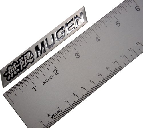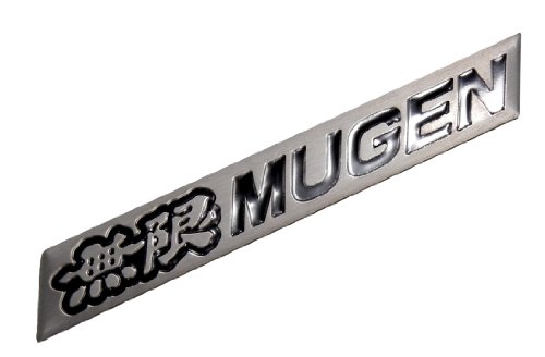 Mugen Embossed Black on Silver Real Aluminum Auto Emblem Badge Nameplate for Honda Acura Civic Fit Prelude Integra RSX Accord Si RSX GSR TSX CL TL GSR LS EK9 EK EG Type-R S JDM other models