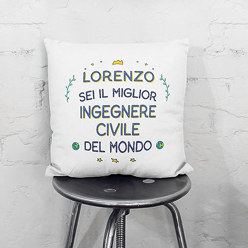 MUGFFINS Cuscino PERSONALIZZABILE INGEGNERE CIVILE uomo - In italiano - Migliore del Mondo - Idee Regali Divertenti Laurea Compleanno - Rivestimento e Imbottitura (40x40 cm). Tatto Cotone