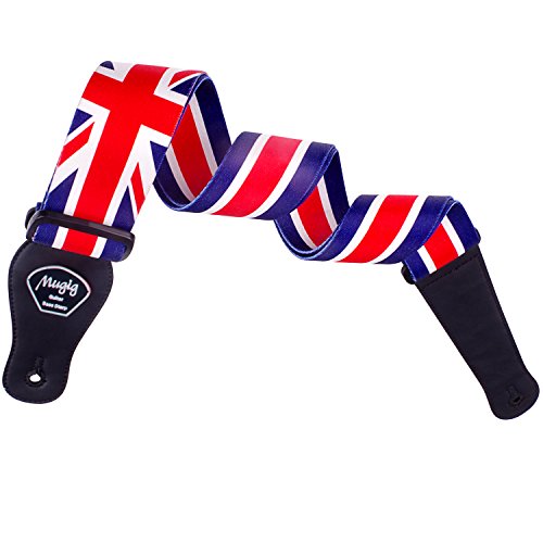 Mugig Tracolla per Chitarra/Basso,Tracolla in Cotone per Chitarra/Basso Acustica/Elettrica con Tasca Porta Plettri, stile bandiera nazionale, Larghezza 5cm, Lunghezza Regolabile da 95 cm a 153cm (Regno Unito)