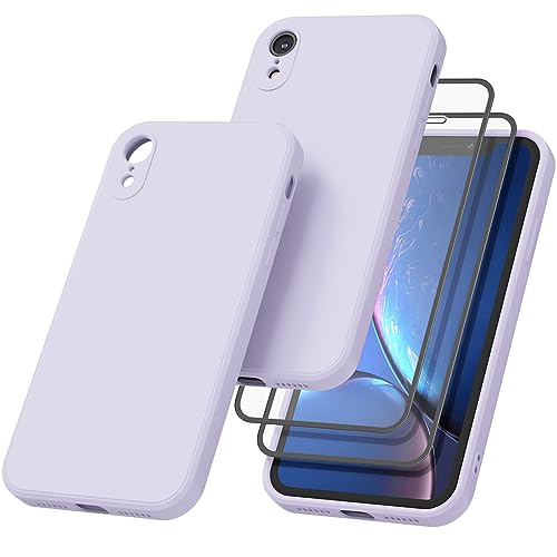 Mugust Cover Solo per iPhone XR, Silicone Custodia 1 × 2 Vetro Temperato per iPhone XR, Pellicola Proteggi Schermo per iPhone XR(Viole)