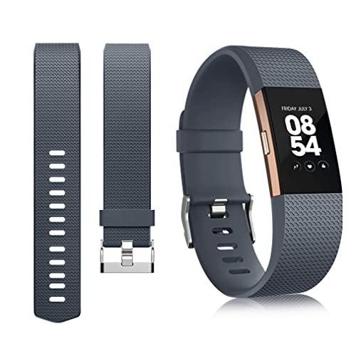 Mugust 3 Pezzi Cinturino per Fitbit Charge 2, Cinturino di Ricambio Sportivo Regolabile per Fitbit Charge 2(Large,Nero+Ardesia+Blu)