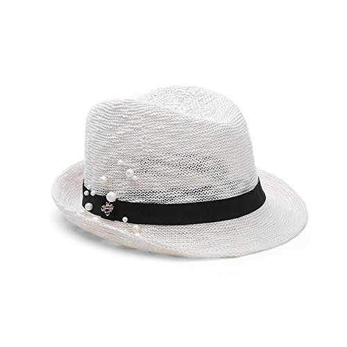 MUHEFANG Le donne di panamensi corona piatta breve soulful volume hem beach holiday sun jazz formale di cappello di paglia, beige