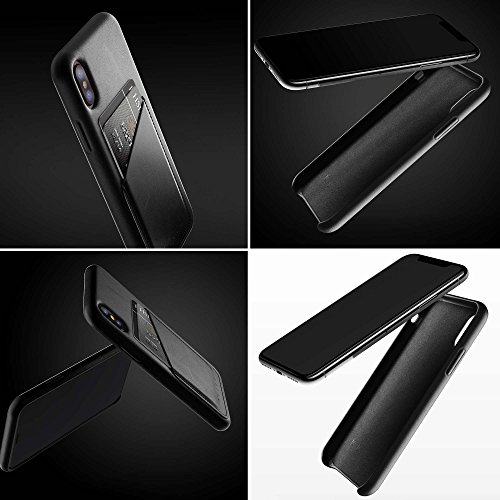 Mujjo Custodia in pelle per iPhone Xs, colore nero, con scomparti per 2-3 schede, extra sottile, antiurto, ricarica senza fili, effetto invecchiato naturale, cover da 5,8"