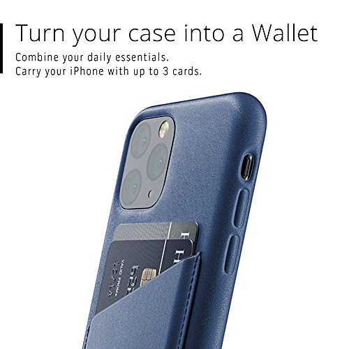Mujjo Custodia a portafoglio per Apple iPhone 11 Pro | Vera Pelle Effetto Invecchiato Naturale, Cornice proteggischermo 1mm, Tasca per 2-3 Carte (Monaco Blu)