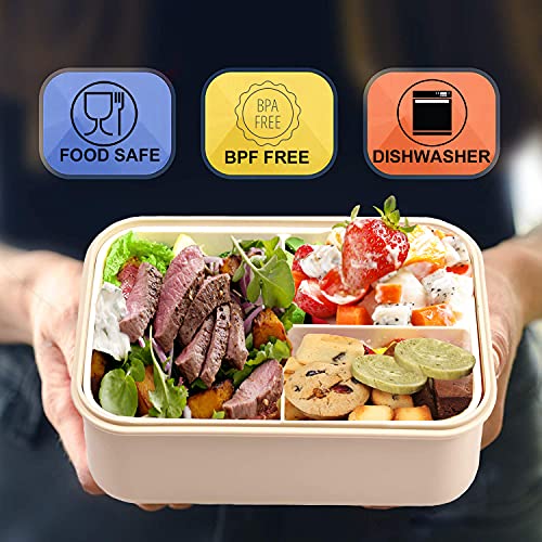 MUJUZE Porta Pranzo,Lunch Box con 3 Scomparti e Termico, Porta Pranzo Bambini Essere Usato per Microonde e Frigo Lavastoviglie,Senza BPA, Porta Pranzo Termico Adatto a Scuola, Lavoro,Picnic,Viaggi