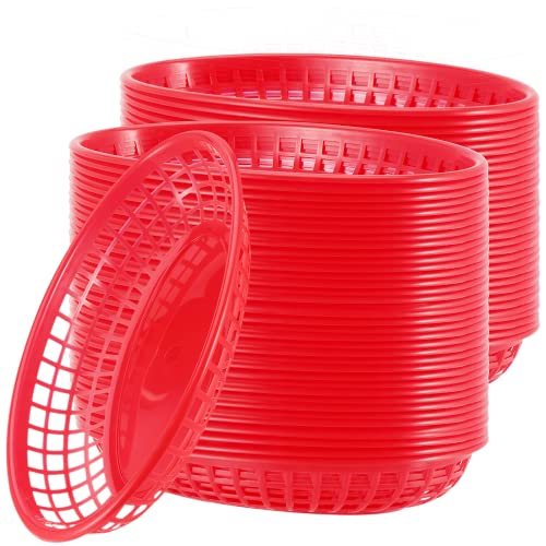 MUKCHAP 60 cestini in plastica rossa per fast food, 23 x 14,5 x 4 cm, cestini ovali per fast food, in plastica, per servire patatine, panini, hamburger