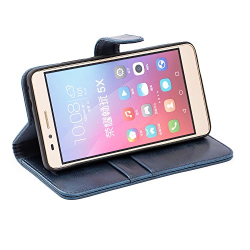 Mulbess Cover per Honor 5X, Custodia Pelle con Magnetica per Huawei Honor 5X Case, Blu Navy
