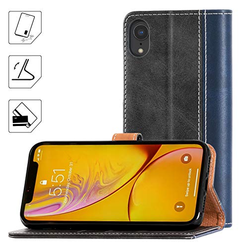 Mulbess Cover per iPhone XR, Custodia a Libro, Magnetica Flip con Chiusura, Interno TPU Antiurto Portafoglio,Sintetica, Elegante Nero