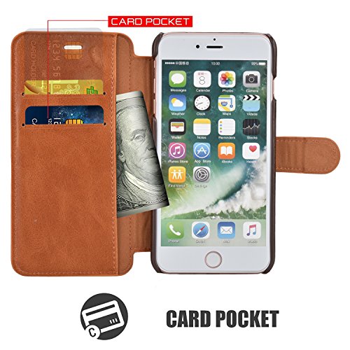 SEMPLIFICA LA TUA VITA: Custodia Portafoglio iPhone 8 Plus all'interno c'è duo slot e una tasca clip per contenere le carte per schede è possibile inserire documenti ID, porta tessere, carte credito, Contanti, fatture, facili da trasportare.