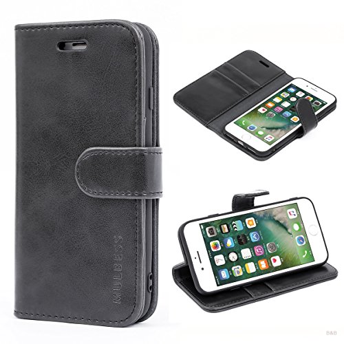 Mulbess Cover per iPhone SE 2022, Custodia iPhone SE 2020 Portafoglio, Flip Cover Libro per iPhone 8 in Pelle, Nero