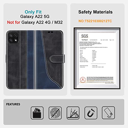 Mulbess Cover per Samsung Galaxy A22 5G, Custodia a Libro, Magnetica Flip con Chiusura, Interno TPU Antiurto Portafoglio,Sintetica, Elegante Nero