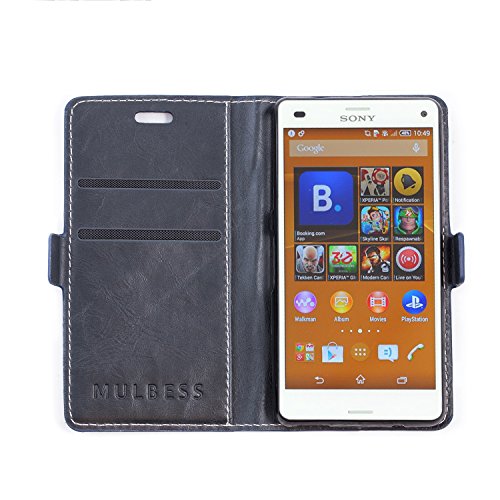 Mulbess Cover per Sony Xperia Z3 Compact, Custodia Pelle con Magnetica per Sony Xperia Z3 Compact [Libro Case], Blu Navy