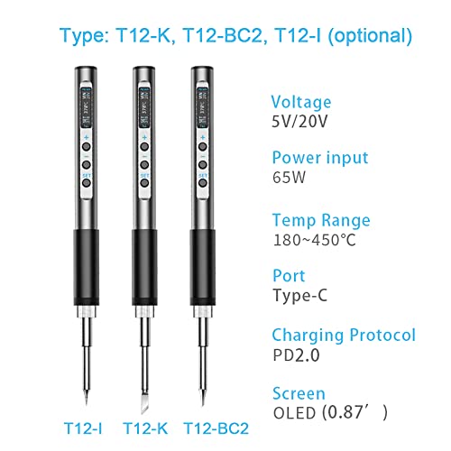 Mulcort Saldatore elettrico intelligente Stazione di saldatura portatile da 65 W Display OLED Alloggiamento CNC completamente in metallo con funzione di regolazione della temperatura Interfaccia