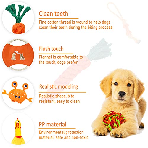 MULEVIP Giocattoli per Cani,Set Giochi Cane 15 Pezzi,Cotone Naturale,Corda da Masticare Resistenti e Lavabili per La Pulizia dei Denti,Cane Resistenti Grandi Cucciolo(Arancia)