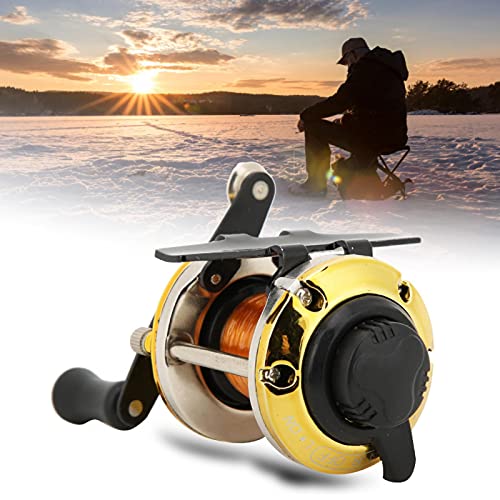 Mulinello da pesca a spinning Mulinello portatile per la pesca invernale su ghiaccio Mulinello con piastra laterale Ruota laterale con attrezzatura di linea(Oro)