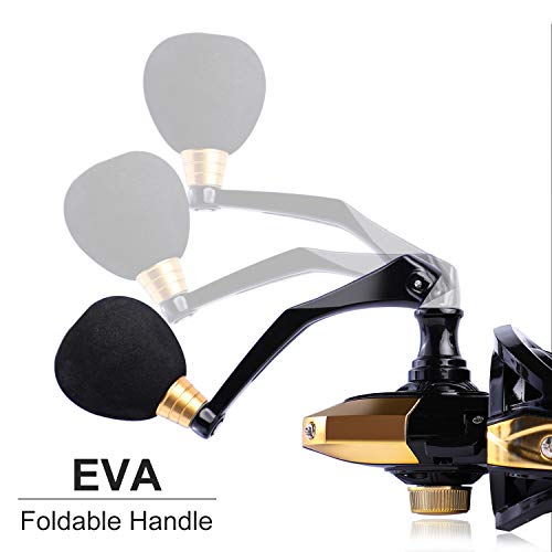 Super leggero: il mulinello da pesca ultraleggero costruito con telaio principale in metallo di carbonio ad alta concentrazione è il 53% più leggero e il 20% più forte dell'alluminio. La bobina da spinning con bobina in alluminio lavorato è forte e robusto, mantenendo stabile la linea in uscita. Il manico ergonomico in EVA offre comfort e non aggiunge molto peso. Un regalo fantastico per chi ama la pesca.