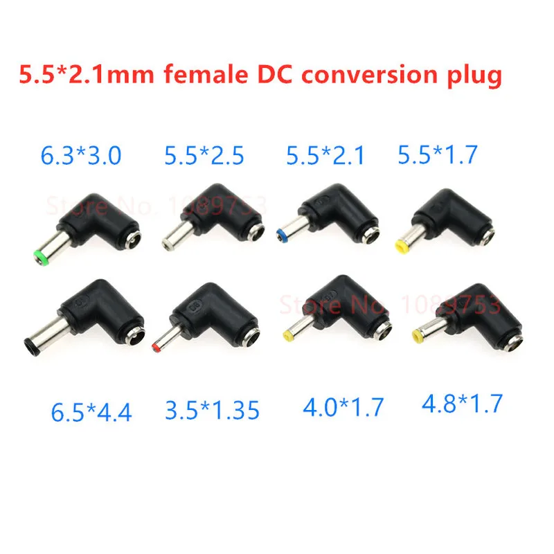 5PCS Multi-function power adapter DC Plug 5.5*2.1 to 6.5/6.3/4.8/4.0/3.5/2.5/2.1MM 90 Degrees male female Connectors