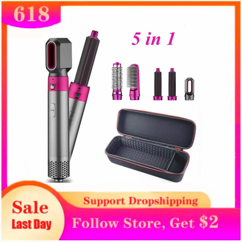 Multi Functional 5In1 Hair Dryer Comb Hair Curling;