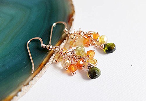 Multi gemstone cluster earrings with Gold FilledFilled rose filled earwire,Citrine, peridot smooth teardrop gemstone, handmade fine earrings Tourmaline 3/4 mm
