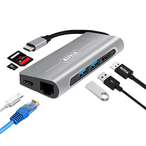 7 in 1 USB Type C Hub,Multi-port Alluminio Tipo C Adattatore Con 4K Porta HDMI Doppia Porta USB 3.0 SD/TF Card Reader PD Potenza e Porta Ethernet RJ45 per MacBook e Altri Dispositivi USB 3.1 Tipo C