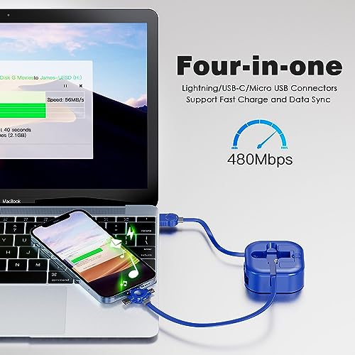 ⚡ 【Comodo e Facile da Usare】: Lunghezza ideale 1,2M è ottimale da usare in casa, ufficio, auto, viaggi e altro ancora. Il cavo retrattile 3 in 1 è molto facile da piegare e posizionare nella borsa, nella borsa del computer portatile, nella tasca ecc.