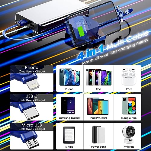 ⚡ 【Retractable & Phone Stand】: Il cavo del caricatore multiplo retrattile ha un design integrato del supporto del telefono, un supporto retrattile è stato impostato sul retro della scatola del caricatore, che potrebbe essere utilizzato come supporto del telefono per lasciare mani libere e godere di guardare mentre si sta caricando.