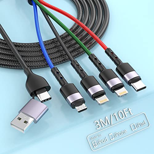 ✨ 【Universale e multifunzione】 Cavo di ricarica USB tutto in uno compatibile con Phone 11/11Pro/XS / XS Max/XR/8/8 Plus 7/7 Plus, Phone 6/6 Plus, Pad4, Pad Air, Pad mini. Cavo di ricarica multiplo USB da 10 piedi La porta di tipo c supporta Samsung Galaxy S10 S9 S8 Note 9 8, LG G5 G6 V20, Google Pixel, Google Nexus 5X 6P, Huawei P9 10, Lumia 950, Lumia 950 XL, OnePlus. Micro USB per Samsung S6/S4, HTC, Sony, la maggior parte dei telefoni Android.