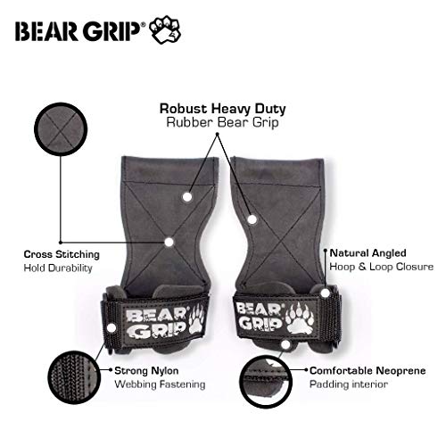 BEAR GRIP Multi Grip Straps/Hooks, Premium Heavy duty weight lifting straps/gloves (Large Rubber)