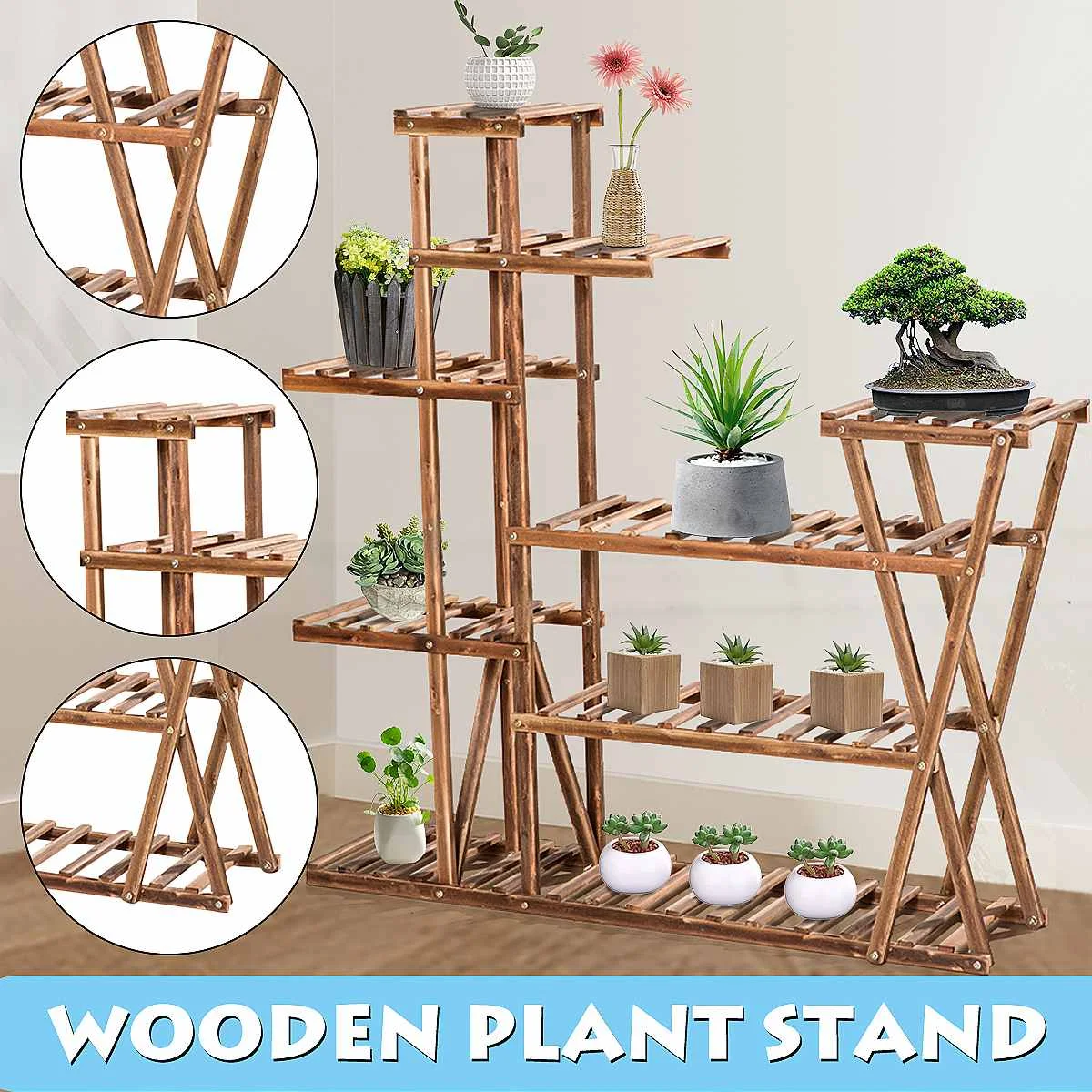 Multi-Tier Wooden Flower Stand Plants Shelf Flower;