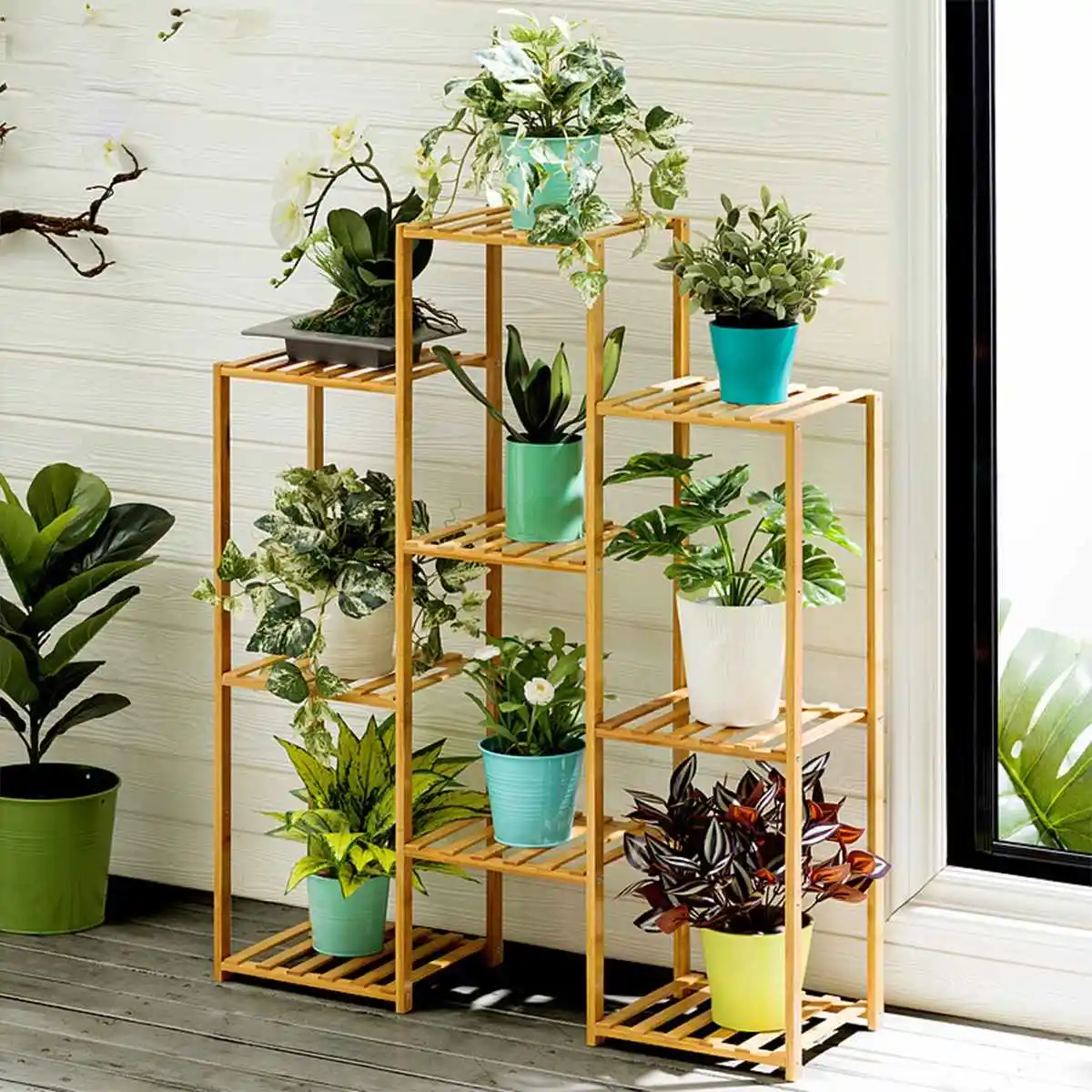 Multi-tiers Wooden Flower Shelf Plant Pot Holders Plant Rack Display Shelf Plant Stand Yard Garden Patio Balcony Flower Stand