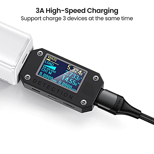 Ricarica 3 A e 1,2 m di lunghezza: circa Cavo principale da 90 cm + cavo di separazione da 30 cm, lunghezza sufficiente per l'uso quotidiano. Nota: solo 3 A di corrente totale, non può caricare il computer portatile, non supporta il trasferimento dei dati.