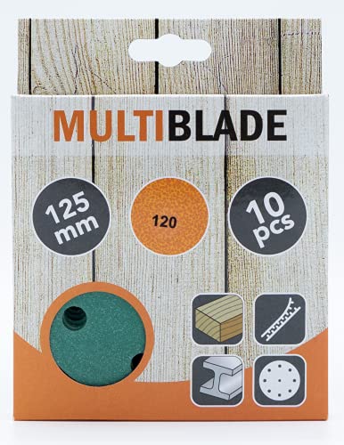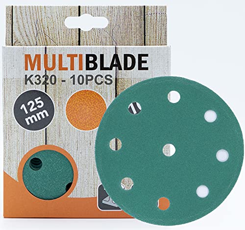 Multiblade Dischi abrasivi professionali, 125 mm, 10 pezzi, grana 320, 9 fori, per legno e metallo, qualità professionale, per levigatrice orbitale