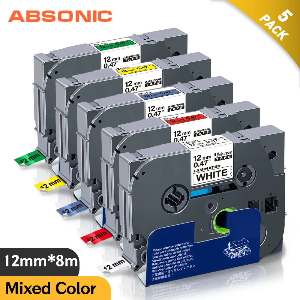 5PK Multicolor 1/2" 12mm Fit Brother Label Tape TZe-231 Laminated Label Ribbon TZe Tape for P-touch Label Printers TZ231 Maker
