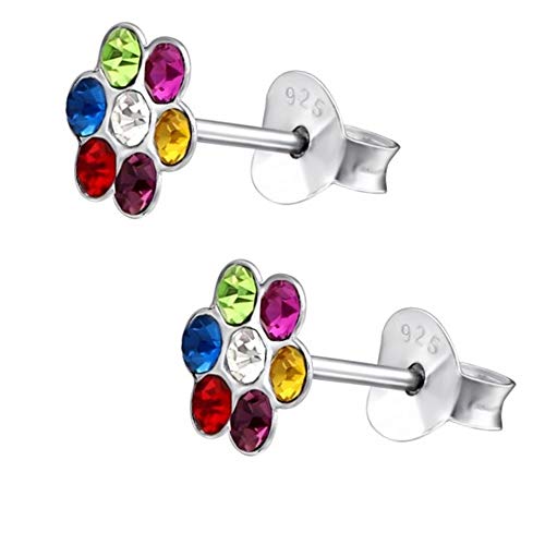 Gh1 a Multicolor Fiore di cristallo orecchini orecchini in vero argento 925 bambini Idea Regalo