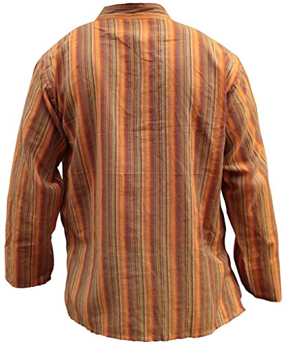 Multicolore MIX dharke righe leggero comodo maniche lunghe tradizionale a serafino Camicia, Hippy Boho, S M L XL XXL XXXL - Nuovo Arancione, Medium