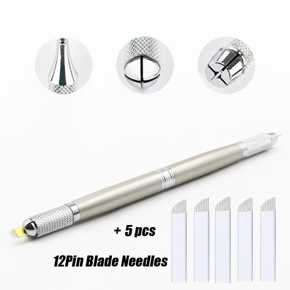 1PCS 3 Multifunction Permanent Microblading Pen with 5 PCS 12 Pin Microblading Needles Makeup Manual Tattoo Pen for Eye brow