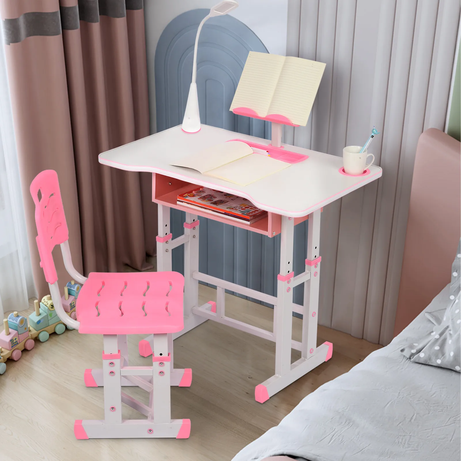Multifunctional Children's Study Desk Chair Set Study Table With Book Stand and Storage Kids Writing Desktop Ergonomic Desk